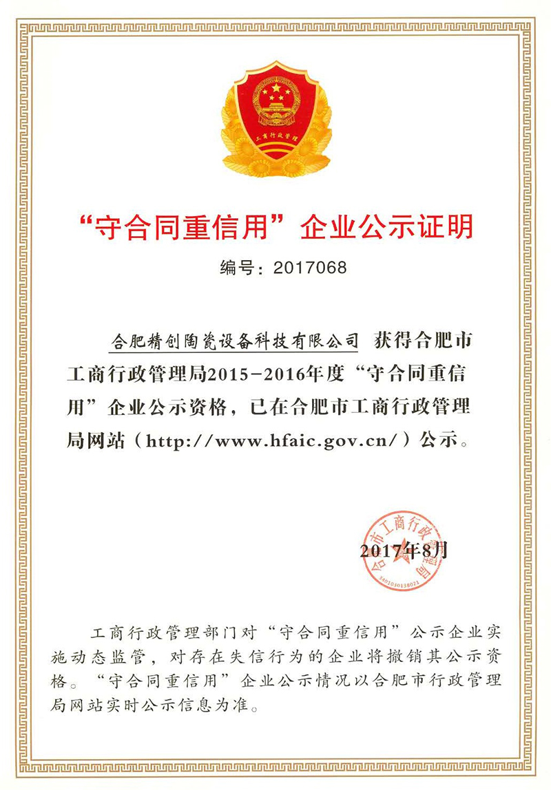 守合同重信用企業公示證明